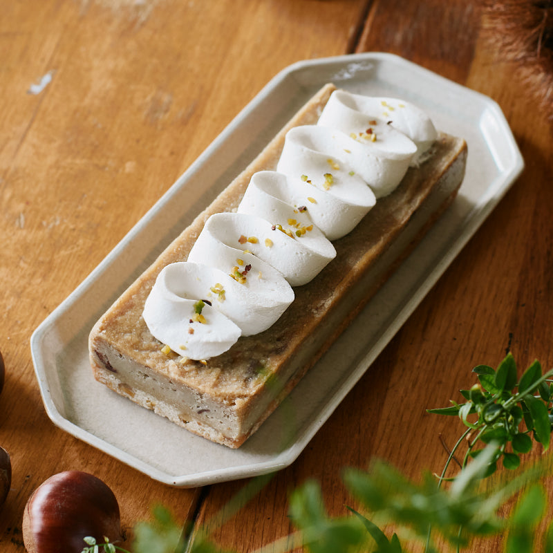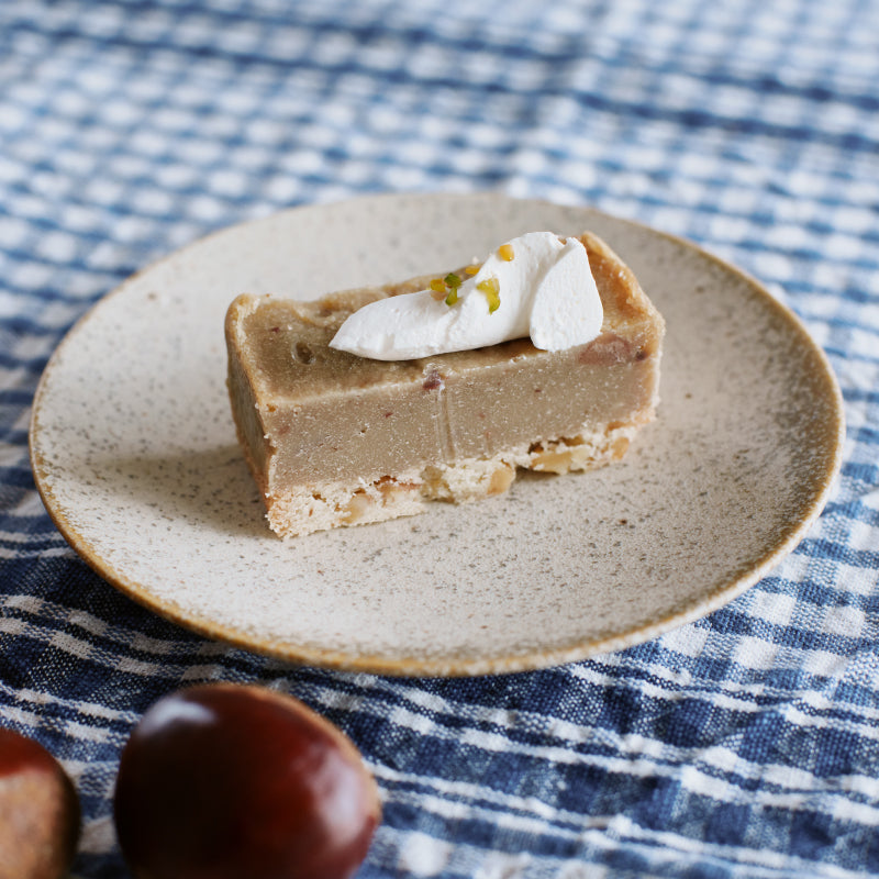 動物性原材料を一切使用せず、栗本来の風味を最大限に引き出したプラントベースのテリーヌです。 濃厚で緩やかな食感が特徴で、栗の深い味わいを楽しめます。 健康志向の方やアレルギーを気にされる方にも安心してお召し上がりいただける、こだわりの一品です。